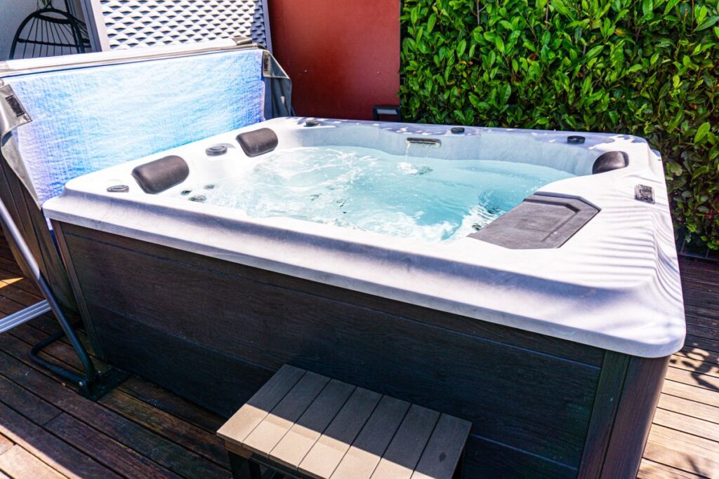 With private swimming pool and hot tub (jacuzzi).
